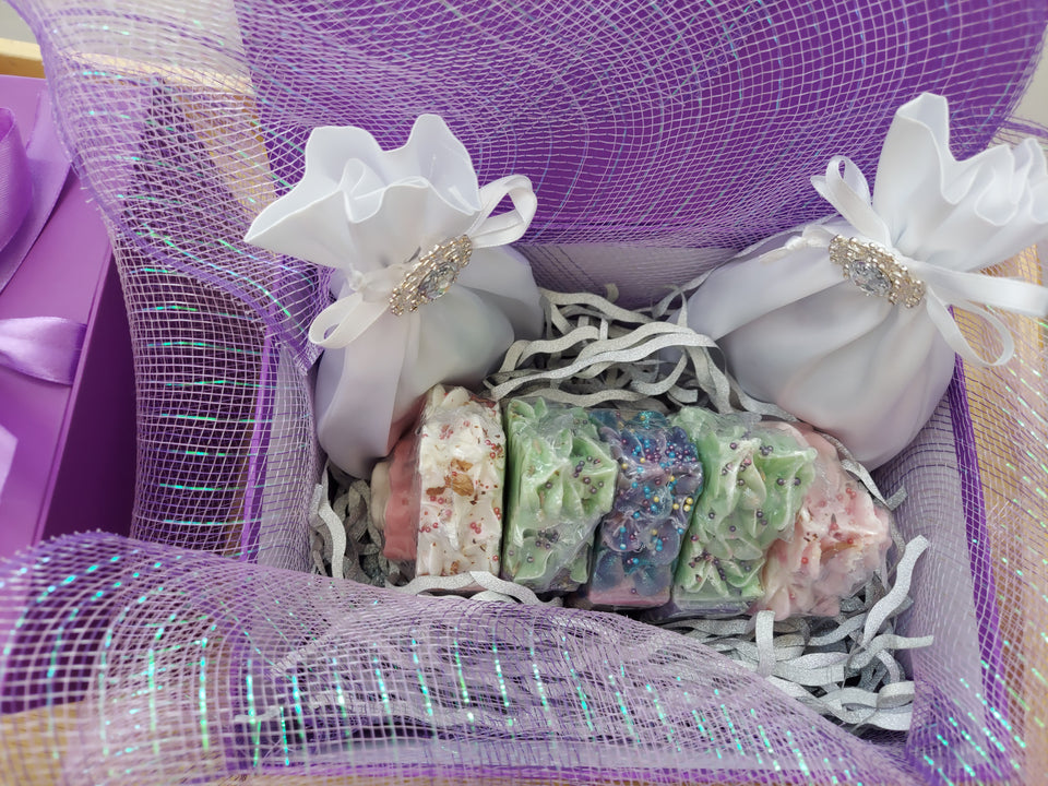 Thank you for the beautiful gift box with my order of soaps and bath bombs. I'm really a customer for life. These soaps are amazing and I can't wait to place another order.
